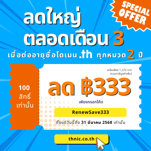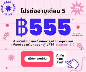 2 พฤษภาคม 2568 โปรต่ออายุประจำพฤษภาคมนี้ ห้ามพลาด!ต่ออายุโดเมน 2 ปีเพียง 555 บาท |
