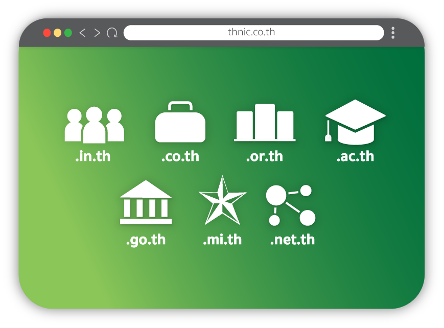 เพราะชื่อโดเมนไม่ใช่แค่เรื่องของธุรกิจ เราจึงมีตัวเลือกชื่อโดเมนที่หลากหลายเพื่อรองรับการใช้งานในหลายประเภท ไม่ว่าจะองค์กร หน่วยงาน บริษัท หรือบุคคลทั่วไป .th จึงจัดชื่อโดเมนออกเป็นหมวดหมู่ตามลักษณะของผู้ถือครองประเภทต่างๆ รวมถึง หมวดหมู่ที่ไม่จำกัดประเภทผู้ถือครอง เพื่อให้คุณสามารถเลือกชื่อโดเมนที่เหมาะสมกับคุณ ดูว่าเรามีชื่อโดเมนหมวดหมู่อะไรบ้าง