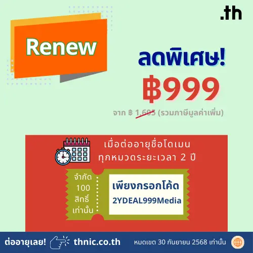 ✅ สิทธิพิเศษสำหรับการต่ออายุชื่อโดเมนทุกหมวด ภายในเดือนกันยายน 2568